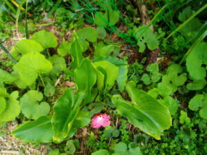 今朝も太陽が上がって来ました。 カイヅカイブキのあった処には新しい草が出ています。今の内ん何とかしなきゃね。