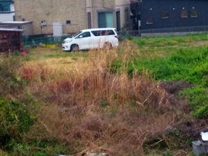 中: 薄の古株の根元には緑の新芽がかなり伸びています。