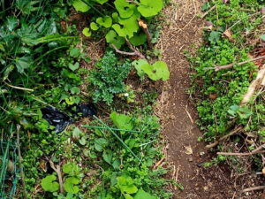 右: アカンサスも力を蓄えています。ドクダミは冬の間、地下活動(まるでレジスタンス!?)に勤しんでいて15度前後の氣温がちらちらと訪れると爆発的に地上に顔を出します。