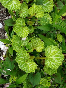 中: ユキノシタが沢山生えているのはIさんの家の前の山桜の脇。