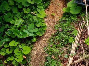 右: アカンサスも力を蓄えています。ドクダミは冬の間、地下活動(まるでレジスタンス!?)に勤しんでいて15度前後の氣温がちらちらと訪れると爆発的に地上に顔を出します。