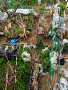 採って来ました。二畝の一番南のジャガイモプランター、一畝のジャガイモプランター、柿苗の鉢等にカラスノエンドウをドサッと置きました。二畝北側はストック場所です。外猫さんも家猫さんもおやつタイム。