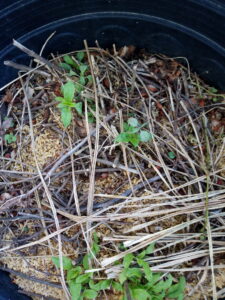 左&中: 防寒せずに越冬したペチュニア。