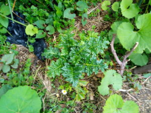 西隣のKさんがいらしていました。一寸おしゃべりしながらお手伝い。草で青いお庭が見る見るうちに草マルチの素敵な庭になりました。