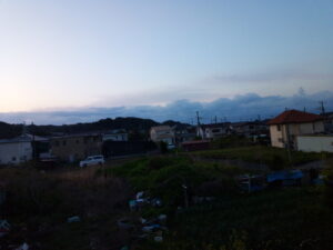 5時20分の空。4分後に日の出です。山の上に上がって来るのは50分頃かな。
