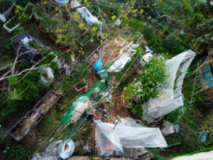 右: 暗くなっているところには南瓜の種を植えましたが、大丈夫かな。他の処もチェックしましたが、動きは未だありません。