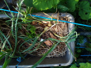 右: ペットボトル大蒜です。まぁ、そこそこ大きくはなるけれど、有機でも化学肥料も貰っていないから、これ以上は無理ですね。来年につなげます。