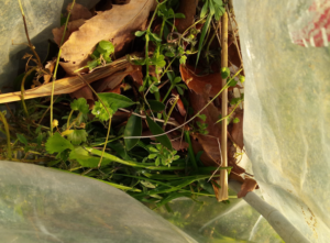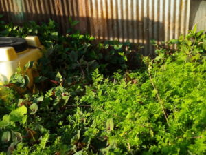 白躑躅下の土留めは出来たけれど、土を入れていないので、取り敢えず草を重ねて入れて行く事にしました。未だ赤玉土を入れようと思っていたのが数時間前です。しかし、土とそこに植えられた植物のコラボで土を作って行くのなら草から作るのが一番手っ取り早いです。