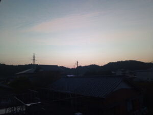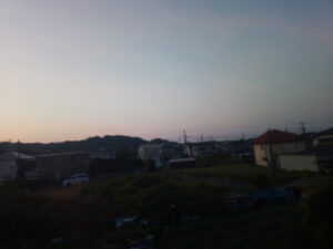 右: この位置では北西に見えますが、2-3分後帰宅してみると北北西の釈でした。