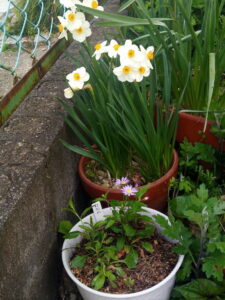 右: ミヤコワスレと水仙の位置を逆転しました。