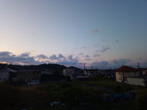 庭までは光が差していません。未だ、お天道様は山の上に上がっていないです。