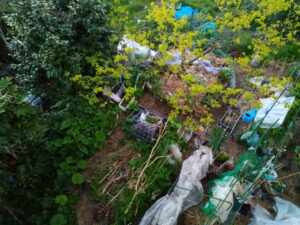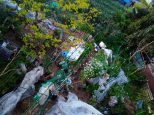 7時半から草刈りにMさんの土地の草を刈って来ました。この間、その前かな?刈った処がもう20㎝以上伸びている。笑 一番目立つ処を2-3か所刈り、脇の通路の生姜の上に載せました。今朝からネットもべた置きしています。次は原っぱでTさんが刈った草を拾って来て我が家の生姜プランターの不織布とビニールの下に置きました。