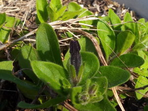 越冬したペチュニアが蕾を着けましたよ。どんな模様が出るのかな?