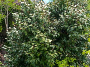 今朝の庭。大西条の葉が見る度に大きくなっています。根元に近い枝の葉がより大きくなっています。
