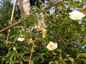 左: 昨日の帰り道、Iさんの白薔薇が咲き始めました。