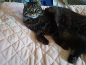 21時、トラ子が甘えて来ました。こういう時は外出したいから何か頂戴、の意味です。カリカリを食べて出かけて行きました。