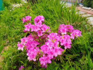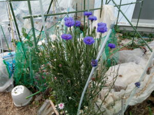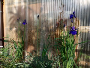 西忠さんの横の路地では菖蒲やニオイバンマツリが咲き始めていました。