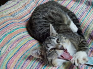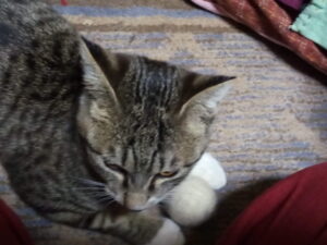 21時、トラ子が甘えて来ました。こういう時は外出したいから何か頂戴、の意味です。カリカリを食べて出かけて行きました。