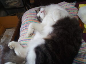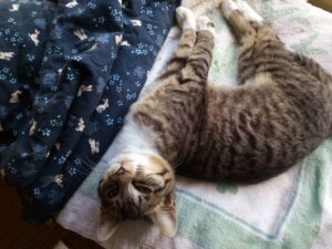 福が19時に戻り、食事をして、さぁ、今日の寝場所は?押し入れに入りたい、というので今日はそこで寝させました。最近、いい寝床で寝ていなかったから今日はゆっくり寝なさい。