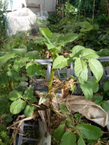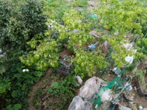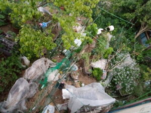 今日は生ごみをコンポスターに入れて、無農薬の生ごみは畝で乾かします。
