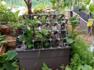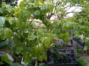 茄子に日光浴をさせます。茄子苗を2株買い足します。これはしばらく延期。購入した3株を様子見です。