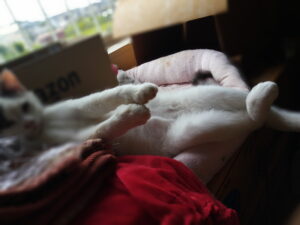 うめの食欲がありません。少し様子を見ますが、昨日から時折吐き気を感じているようです。大好きな水分補給スープも飲みませんでした。昨日の夜も鰹の煮物は拒否でした。代わりにジュレを食べさせました。乳酸菌ちゅ~るも同じ鮪でも紫色のパッケージはダメで赤いパッケージはOKみたいです。どちらが良いかを聞くと赤いパッケージにスリスリし、紫色は匂いを嗅ごうともしません。嗅覚が鈍感な人間の私には理解出来ないですが、猫達はパッケージの上から微かな匂いを嗅ぎ取る事が出来る様です。ちゅ~るを開けた途端に猫達がこちらを一斉に見る事からも、ちゅ~るの匂いは結構猫達には強い匂いだ、と分かります。