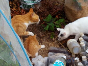 3時半、タイガーさんが食事に現れました。その前に一階では三毛ちゃん、ちゃーちゃん、クロスケ、はっちゃん、ナガ君は食事を済ませています。ほぼ同時刻でうめは食事をしていないけれど、外出です。二階では福とトラ子が食事を済ませました。私は完全に猫タイムの生活です。