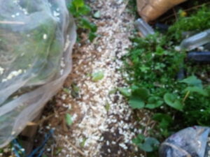 Nさんの処に籾殻袋3回分往復してパンパースグラスとセイタカアワダチソウの若い茎を頂いて夏蜜柑の根元とジャガイモにも萱を掛けてみました。Nさんの処には材料が未だ未だあります。地上10㎝で前回刈り取った処が地上20㎝位まで伸びていますね。凄い生長力です。日差しが強いから午前中だけね。