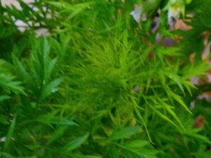 左: 人参の花が脇の通路のプランターで上がって来ました。