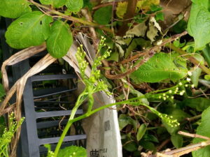 右: 三つ葉の花が上がりました。早いなぁ、季節の進み方が!