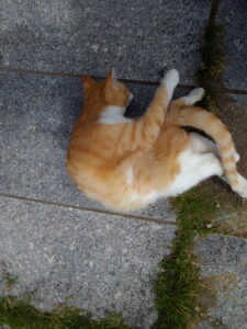 先日道路のブロック塀の四つ角に猫が死んだように脱力したまま横たわっていました太田屋から戻って来た時もそのままだったので、母と亡くなったんだねと話していたのですが、昨日そこの所を通ったら同じ場所で座っていました、亡くなったんじゃなかったんだというほっとした出来事がありました!