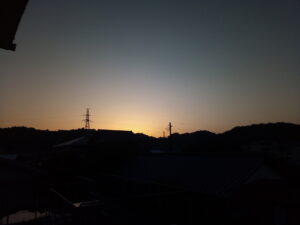 一番明るい処が裏の、裏のお家の屋根の東角になりました。太陽の旅はマダマダ進みます。
