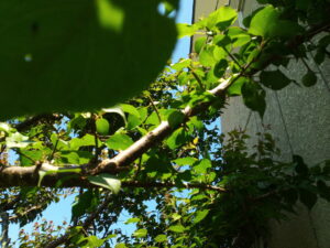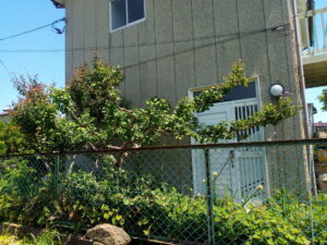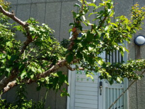 右: 1-2枝は家屋の外壁に沿って立ち上がって2つに分かれています。