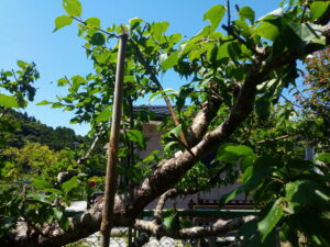 やって居る内に剪定する時期によって剪定する人の意識がどこにあるか、という事が大事なんだな、と感じました。アブラムシが付いて風通しを良くするためにやり始めましたが、今の時期には花芽分化を意識しないといけないんですよね。あ、昨年は剪定したのかな?丁度ブログをpcの不調で休んだ時でした。写真も撮って居らず不明ですね。7月1日に若芽が伸びた梅木がありましたが、剪定したものはありませんでした。