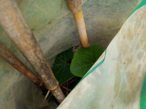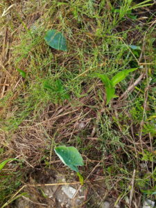 西隣さんの里芋畝に発芽した里芋。そういえば温州さんの真ん前の晩生ジャガイモですが、皆芋が出ていた。笑 土掛けて置いたけれど、土を掛けただけではダメ。掘って埋めないと雨で流れますよ。