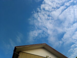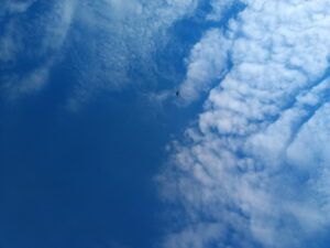 2回目のヘリを撮影。見えますかね?黒い点です。今、また音がして来ました。3機め?4機目が来ました。更に5機目。