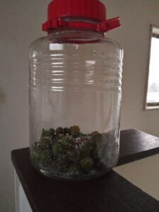 昨日拾った西隣さんの梅と我が家の剪定で落ちてしまった梅、合わせて700g弱を漬けました。私は毎年落ち梅も数の内で入れて行きます。10日から二週間もすれば半分以下、否、もっとかな。笑 塩の濃さは15%です。今年は海水塩のみでやってみます。塩には均一化の法則があるらしいので、良いお塩を20%、手に入るお塩を80%で漬けています。消毒アルコールはいいちこを使いました。