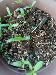 右: 今日はマリゴールドアイシスを鉢増ししようかなぁ。未だサルビア混合が小さいから私には一寸緊張する作業だからもう少しサルビア混合が育ってからにしようか?