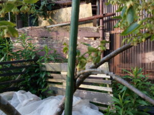 中: 買う時に自家結実性が高い、と書いてあったんだけど、雌花しか着いていないのよねぇ!?