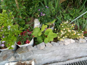 左: 秋海棠が思いの外凄い生長です。ミヤコワスレの薄紫とピンクが見えないじゃん!?