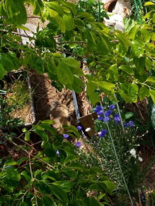 『僕(タイガー)がどこに居るか、分かるかなぁ?』柿の木の下は猫達の昼寝の場所になりそうです。笑