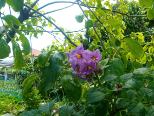 左: グランドペチカ(ジャガイモ)の花は鮮やかな紫です。