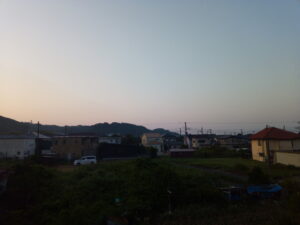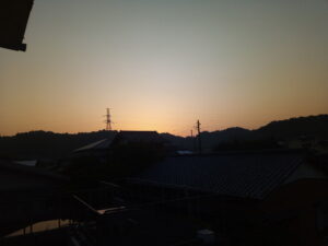 太陽の上る位置がAさんの裏のお家の屋根に掛かって来ました。太陽の旅も終盤戦ですね。後一月でUターン開始です。