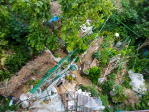 原っぱの草を二回程運びました。これでお仕舞。通路に敷こうかな。脇の通路がカチンカチンなんですよね。