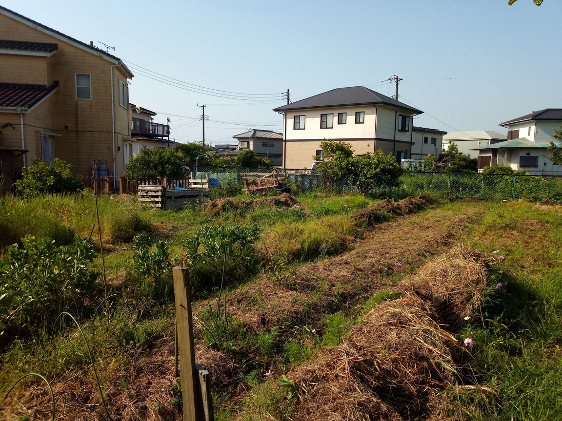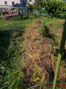 原っぱの草を二回程運びました。これでお仕舞。通路に敷こうかな。脇の通路がカチンカチンなんですよね。
