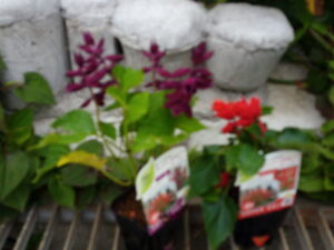 PWさんからサルビアゴーゴーが届きました。赤、紫夫々2株ずつです。取り敢えず、玄関アプローチプランターに一株ずつ植えました。このプランターは庭土ではありませんが、生育は庭土と同じに植えっ放しです。今回もパンジーの種はそのまま土の上に置いて少し空いている処にサルビアゴーゴーを植え付けました。