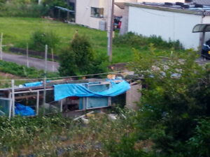 怪しい雲行き。北へ回ったらこんな感じでした。雨雲レーダーには映っていませんので、雨雲ではないのかな?