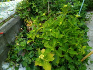 ピンク紫陽花の親株の周りの菊とドクダミをピンチして行きました。大分風が通りやすくなりました。