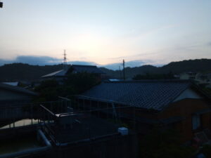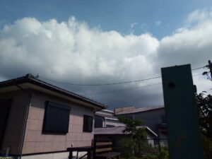 怪しい雲行き。北へ回ったらこんな感じでした。雨雲レーダーには映っていませんので、雨雲ではないのかな?