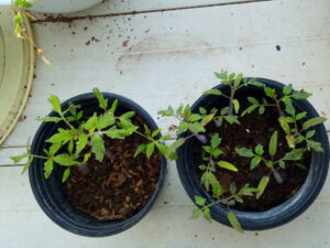 左: トマト苗です。また鉢増しが必要になって来ました。もう少し太くしてから定植したいな。